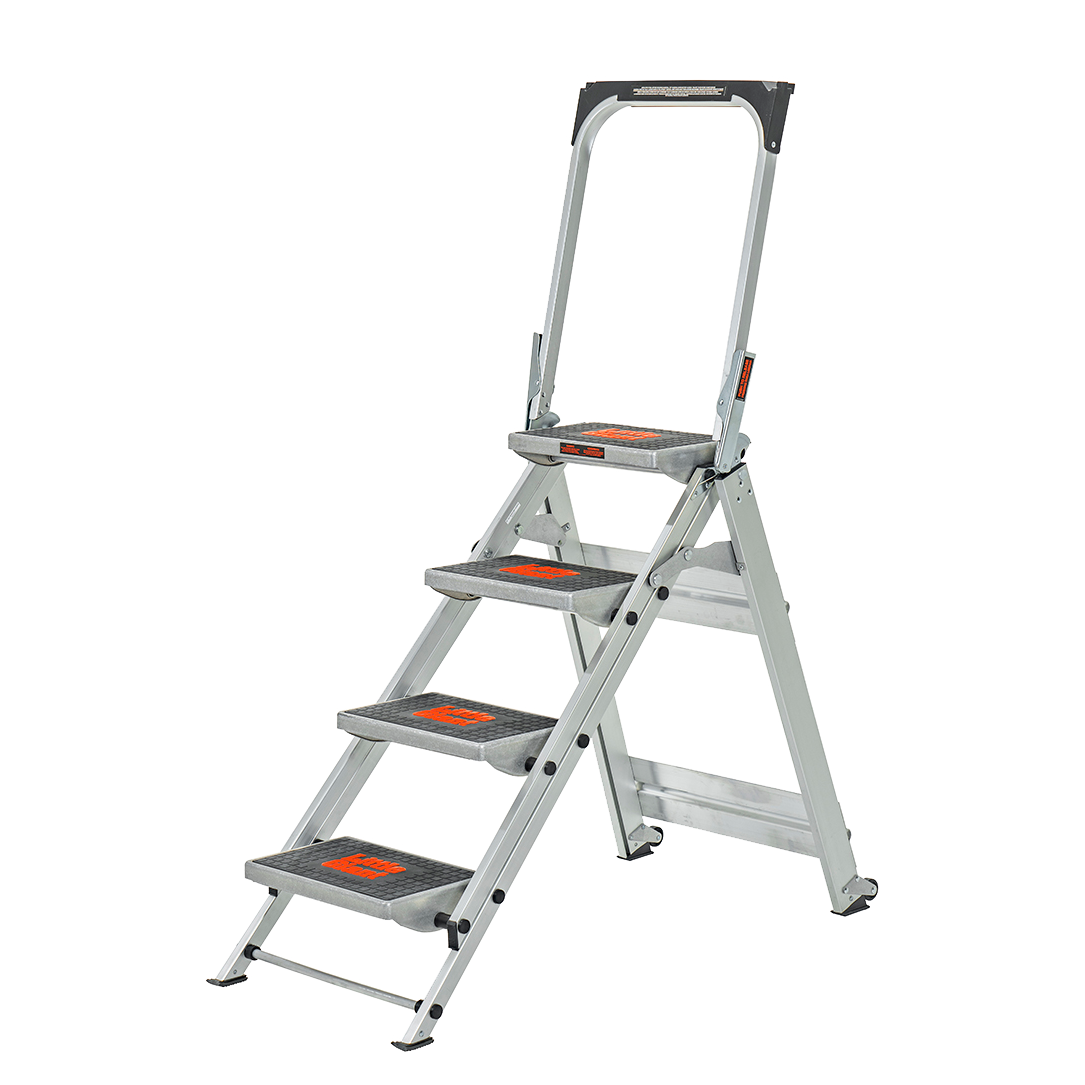 For ekstra komfort og sikkerhed, er Safety Step udstyret med store, brede trin med skridsikker gummibelægning. En sikkerhedsbøjle til alle praktiske gøremål.