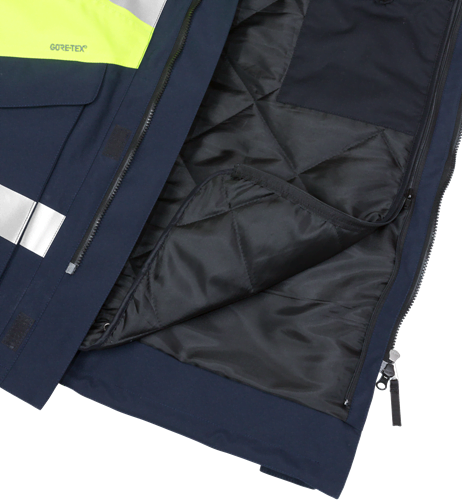 Med Fristads‘ To-lags GORE-TEX jakke får du ikke blot et produkt, men en pålidelig ledsager gennem vind og vejr. Denne jakke er skabt til at imødekomme de krav, der stilles til professionelt arbejde i uforudsigelige forhold. Med sin vind- og vandtætte ydeevne og åndbarhed sikrer den, at du forbliver komfortabel, uanset hvad dagen bringer. Det aftagelige quiltede for, der inkluderer en praktisk indvendig lomme med knaplukning, tilføjer både varme og funktionalitet. Det kan nemt fjernes for at omdanne jakken til en shelljakke og tilpasse den efter behov. Hætten, der er aftagelig og justerbar med snoretræk og for, tilbyder ekstra beskyttelse og tilpasning.