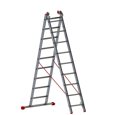 JUMBO Super Proff Combistige 2-delt er en ekstra bred stige 51,5 cm. Der er en ekstra kraftig stige i håndværkerkvalitetet, er fremstillet i 6005-T6 aluminium. Dette gør at stigen er stærk og robust, men stadig er let. Stigen har 38 mm ergonomisk vinklede og skridsikre trin, som giver dig en plan og sikker ståflade. vanger og trin i elokseret aluminium – ingen beskidte fingre! Tilhørende er der combibeslag som gør det muligt at opstille stigen som wienerstige. Nylonbøsninger i alubeslag, giver en let og hurtig udskydning i skydestigefunktion. For at gøre udskydningen endnu nemmere, er der også monteret kraftigt tophjul. Som en ekstra sikkerhed er der også en selvlukkende kliklås i aluminium. Sidst men ikke mindst medfølger der en stigefod med solide fødder i skridsikkert, slidstærkt materiale.