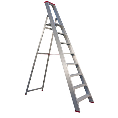 Ekstra kraftig håndværkerkvalitetet. Stigen har kraftige vanger med elokseret overflade og 12-punkts samlinger samt kraftige hjørneforstærkninger på alle trin. 10 cm brede trin og stor, plan 31 x 31 cm platform. Stigen er forsynet med en solid støttebøjle for ekstra sikkerhed og komfort. Øverst på støttebøljen findes en praktisk værktøjsbakke.1382534