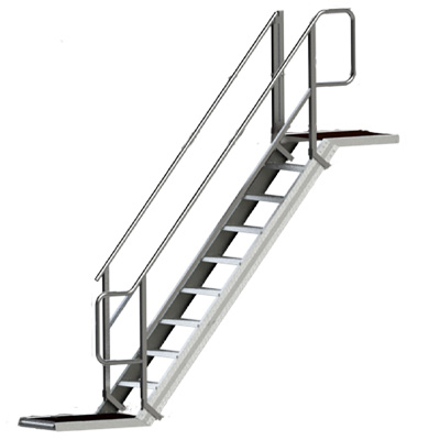 Udbygningssæt til stilladstrapper. En trappe til platformslængde 250 cm komplet med gelænder. Stiger med 2 meter